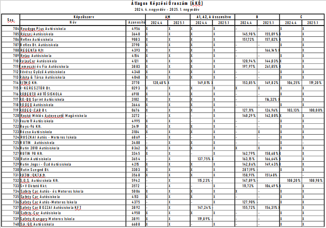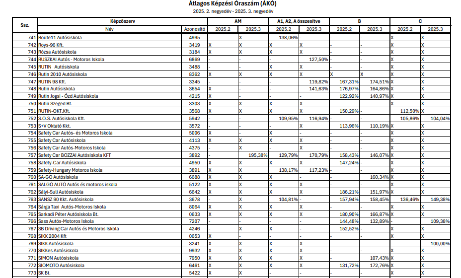 Fontos: a tájékoztató a kötelező minimum óraszámokat, km-t tartalmazza, a sikeres